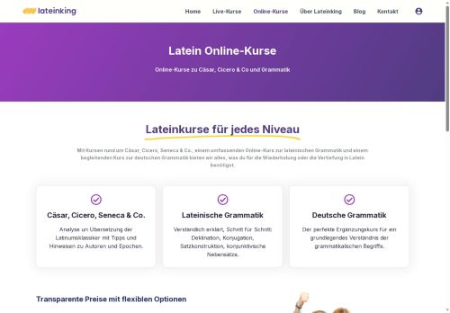 Die Latein Online-Kurse von Lateinking bieten eine ideale Möglichkeit, die Welt von Cäsar, Cicero, Seneca und anderen Klassikern zu entdecken. Die Kurse sind für jedes Niveau geeignet und helfen dabei, Lateinkenntnisse aufzufrischen oder zu vertiefen. Im Angebot sind Kurse zur Analyse und Übersetzung der Latinumsklassiker, ergänzt durch hilfreiche Tipps zu Autoren und Epochen. Ein umfassender Kurs zur lateinischen Grammatik erklärt Schritt für Schritt Themen wie Deklinationen, Konjugationen, Satzkonstruktionen und konjunktivische Nebensätze. Zusätzlich gibt es einen begleitenden Kurs zur deutschen Grammatik, der ein grundlegendes Verständnis grammatikalischer Begriffe vermittelt. Wer sich über die Warteliste anmeldet, profitiert von exklusiven Rabatten, limitierten Angeboten und erhält frühzeitigen Zugang zu neuen Kursen. Teilnehmer früherer Live-Intensivkurse können sich zudem über zusätzliche Vergünstigungen freuen.